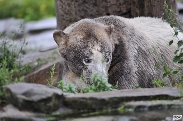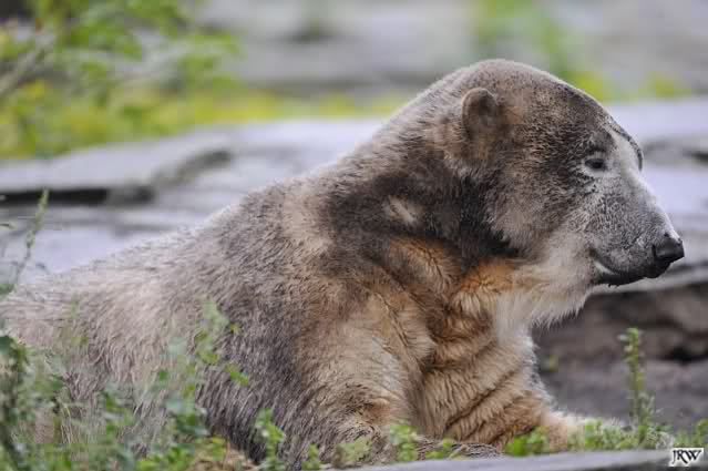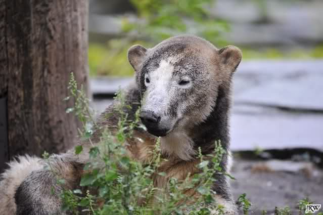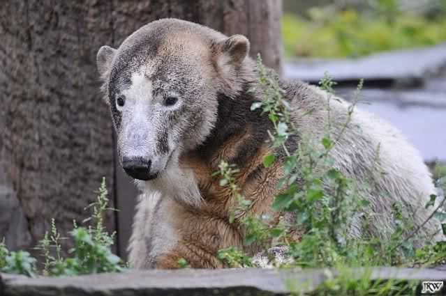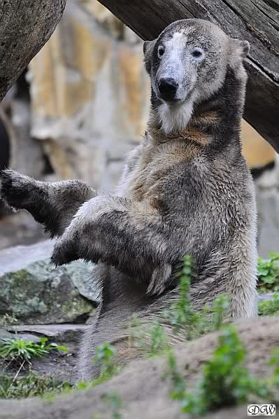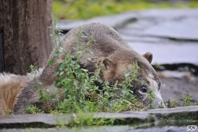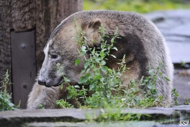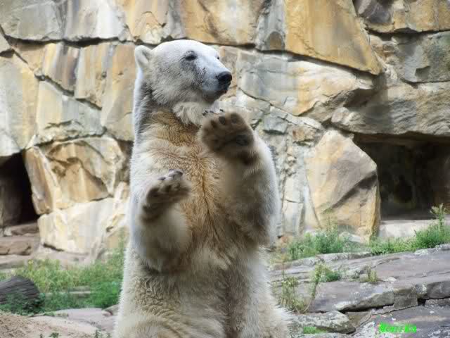 Heute war ich wieder im Zoo, zu dem trotz des schlechten Wetters doch viele Besucher den Weg fanden (nur nach Knut mussten sie wegen fehlender Ausschilderung weiterhin wie immer suchen). Zur Zeit der Fütterung regnete es, danach beruhigte sich die Wetterlage und am Abend schien sogar die Sonne. Mit 14 Grad am Tag war es aber etwas kühl.