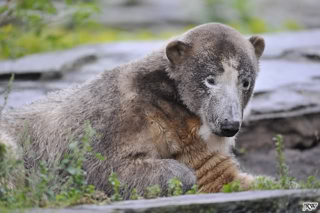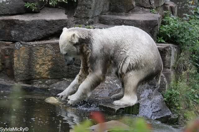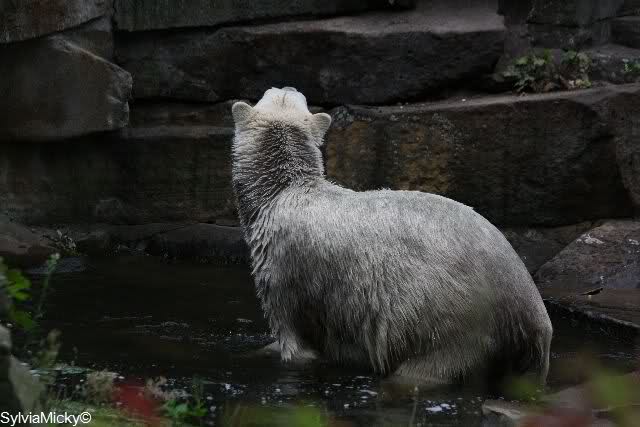 Hello to you all Knut friends around the world at Sunday evening. It was a rainy and cold day. But we saw many visitors in Berlin Zoo.