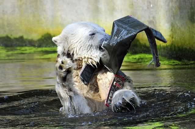 Liebe Knut-Freunde, was für tolle Fotos von Knut, danke dass man immer auf dem Laufenden gehalten wird. Gut finde ich, dass Knut vom Laufen vor dem Fressen abgelenkt wird. Im übrigen habe ich vor kurzem eine aufgenommene Folge von "Panda, Gorilla u. Co." gesehen, wo Herr Dörflein auch schilderte, wie er mehrmals kurz bei Knut vorbeigeht und ihm jeweils bei drohender Langeweile Spielzeug zur Beschäftigung zuwarf. Er war immer bemüht, Knut zu beschäftigen und seinen Spieltrieb zu befriedigen.