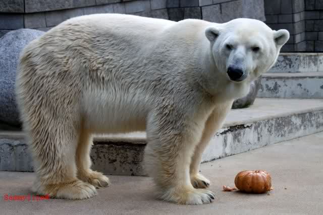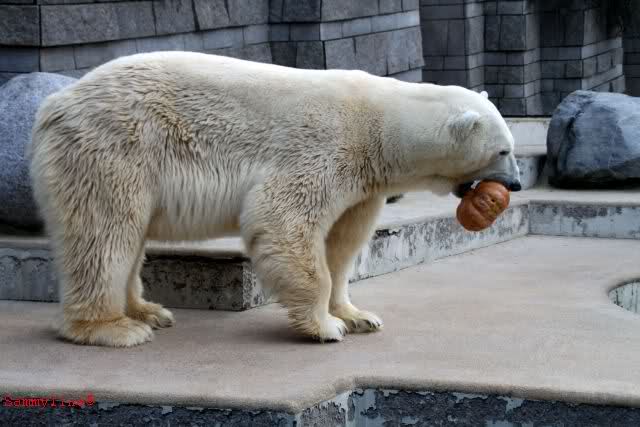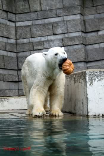 Onkel Kühn hatte (so glaube ich) ein bisschen Mitleid und war den Kürbis so, dass Knut leider nicht ins Wasser musste. Pfötchenarbeit ist eben alles. Oder gelernt ist eben doch gelernt.