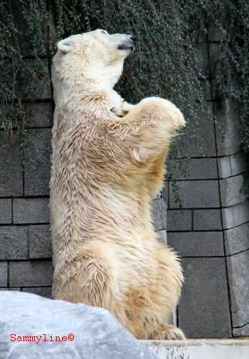 Vielleicht solltest du deinem Söhnchen mal einen Tipp nach Berlin schicken, wie er sich Tante Katjuscha gegenüber verhalten soll. Die hat ihn gestern nämlich schamlos in den Po gebissen - und so etwas darf sich ein Eisbären mann doch nicht gefallen lassen, oder?
