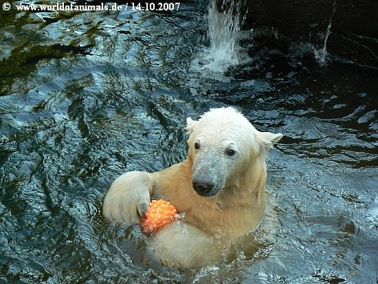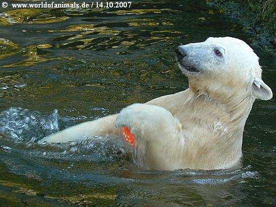 Knut in the water...pictures from sunday afternoon, October 14th, 2007. Playing with his toys.