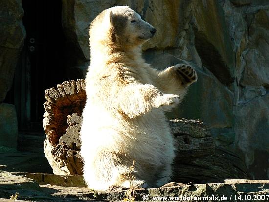Und Du tust gut daran, auch immer wieder darauf hinzuweisen, dass Knut kein Kuschelbär ist sondern selbstverständlich immer mehr mit dem gehörigen Respekt, den man vor einem Wiltier haben muss, behandelt wird. Alles andere fände ich auch unter seiner Würde.