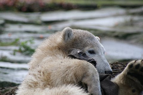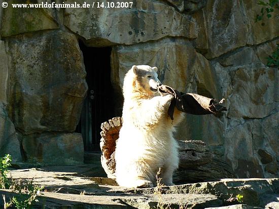 …Im Gegensatz zu ihm hat Hudson, ein anderer Eisbär, viele bunte, lustige Spielzeuge. Die bestehen alle aus leichtem Material. Erschlagen (und ertrinken) wird man eher von den schweren Dingen wie z.B. von dem schweren Baumstamm im Knuts Wasserbecken.