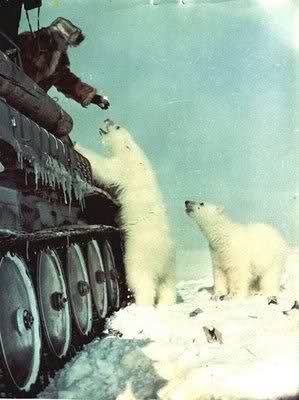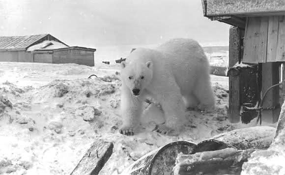 Aber lasst mich eine Frage stellen: Wie kann es sein, dass die Russen anfingen die Eisbären in so unbesorgter Weise mit Kondensmilch zu füttern, wenn sie doch normalerweise als Gefahr für die Polarstationen galten und sofort umgebracht wurden wenn sie in Siedlungen auftauchten (siehe hier auch wenn das nicht über Chukotka ist)