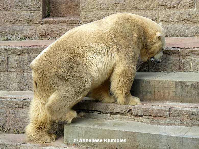 So hat Churchill sein Alleinsein selbst zu verantworten, wenn es ihm auch nicht bewusst ist. Er ist nun über dreißig Jahre alt und, wie gesagt, ein schönes und imposantes Tier. Nur beim Treppensteigen wird ein arthritisches Humpeln bemerkbar. Ein Pfleger meinte, Churchill sei größer als Troll; da bin ich mir aber nicht so sicher.