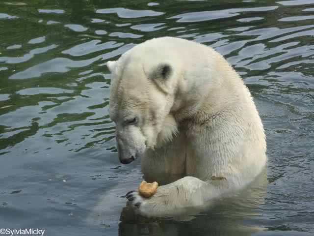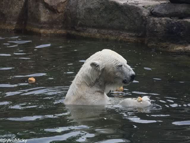 Heute war Kindergeburtstag im Zoo. Die Großen bekamen am Nachmittag Brötchen von den Kindern. Nur Katjuscha wollte nicht ins Wasser. Also ging sie leer aus.