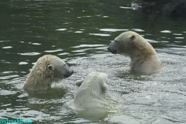 Heute spielten alle drei Bären zusammen im Wasser. Das habe ich so noch nicht gesehen. Später lagen alle drei zusammen und schliefen. Man darf sie NIEMALS trennen.