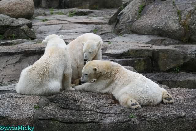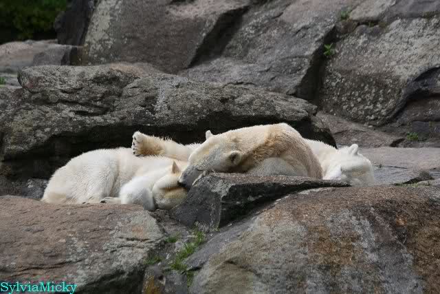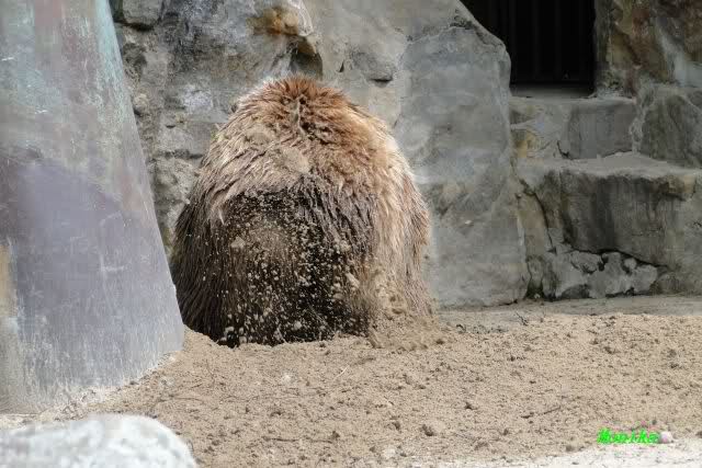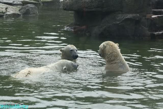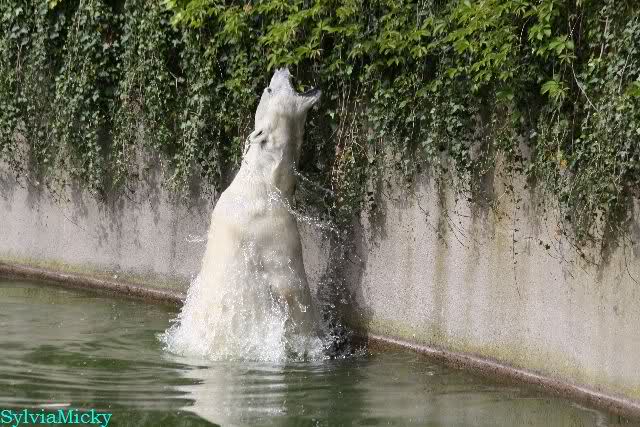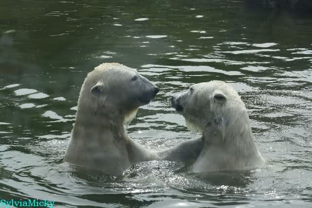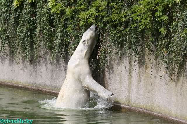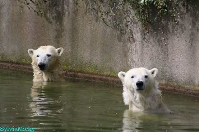 Heute am Nachmittag lernte ich ein nettes Paar aus Frankfurt/M. am Gehege der Großen kennen. Natürlich rätselten sie, wer Knut sei. Ich zeigte ihnen den Weg.