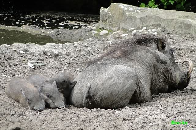 Bei den Warzenschweinen lag ein großer frischer Ast. Wäre ja auch eine Möglichkeit für die Bären??