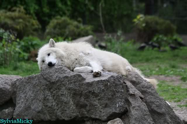 Die Wölfe gaben heute morgen ein Heulkonzert. Übrigens, gem. Aussage eines Pflegers gibt es 3 kleine Wolfswelpen.