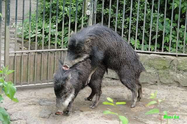 Die beiden Pekaris kümmern sich um weiteren Nachwuchs.