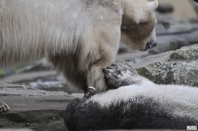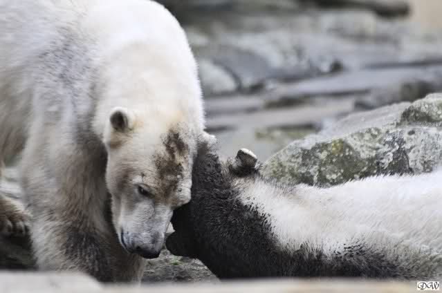 Das sind ja wieder Fotos zum weich werden ... Knut und Giovannna am Schmusen ... Knuts Ausdruck wieder einmalig. Danke fürs Posten und für die erfrischenden Kommentare dazu.