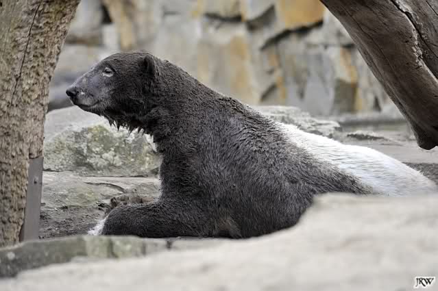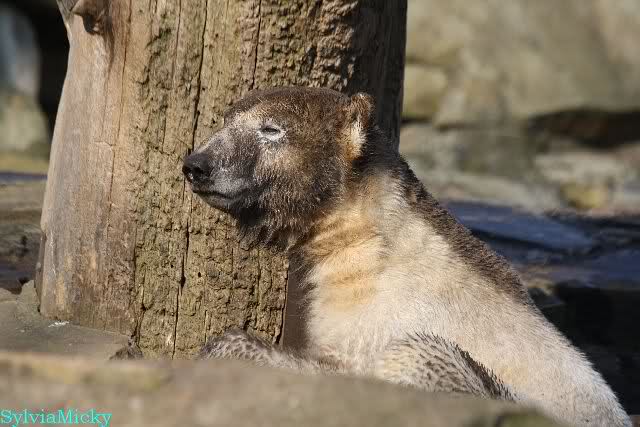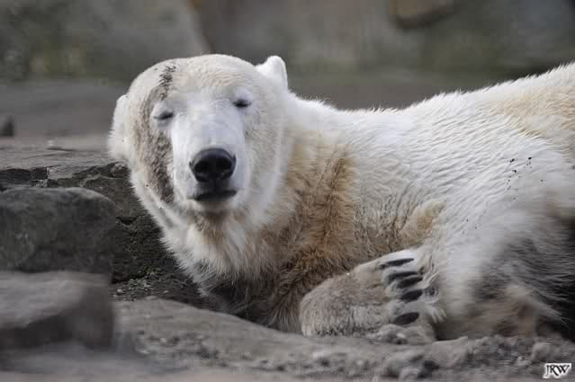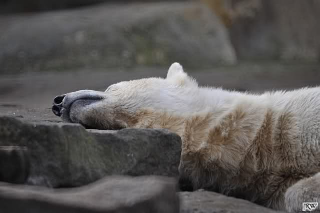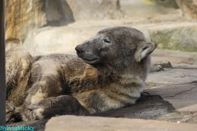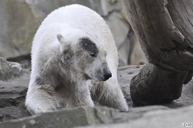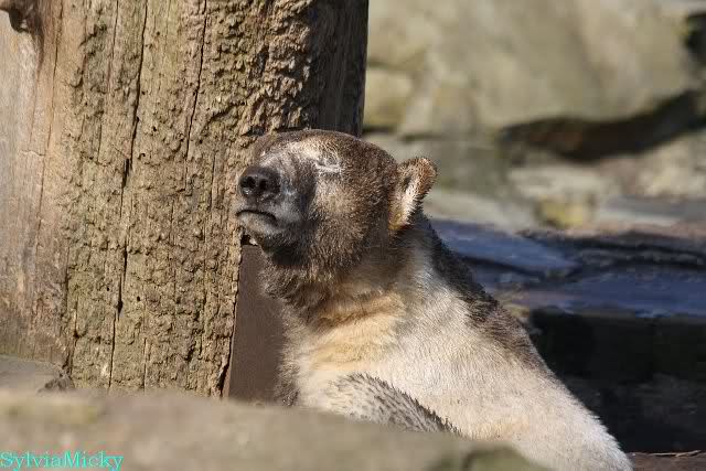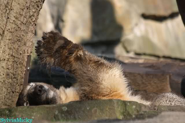 Über Knut und Gianna gibt es heute Vormittag nicht viel zu berichten. Knut lag unter dem Baum und färbte sich ein. Als Gianna den Platz beanspruchte legte er sich neben den Metallbaum und schlief. Da lag er noch, als ich gegen 13.00 den Zoo verließ.