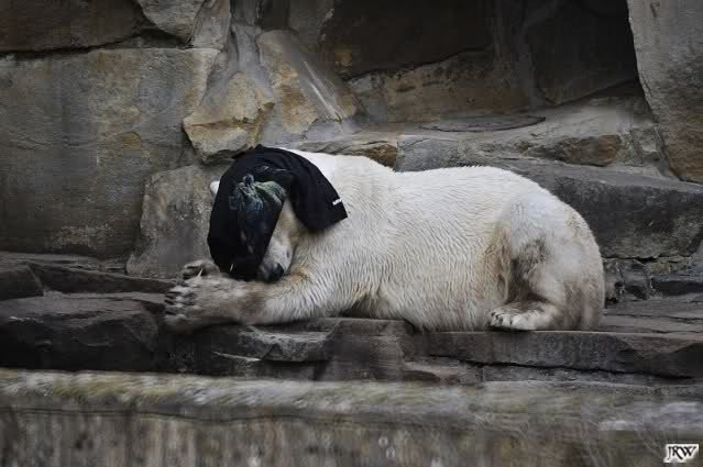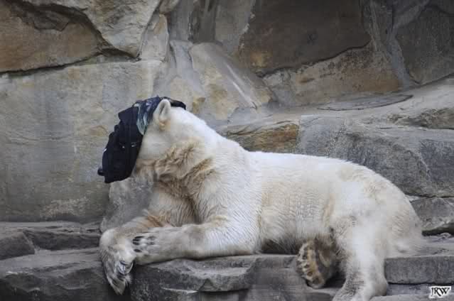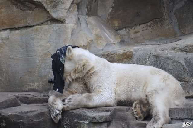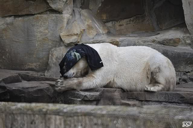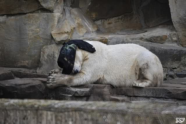 Ich habe hochinteressante Informationen! Nach aufwändigen Recherchen bin ich endlich dahinter gekommen, warum Knut tagsüber ruht. Er hat einen ( unbezahlten ) Nebenjob!