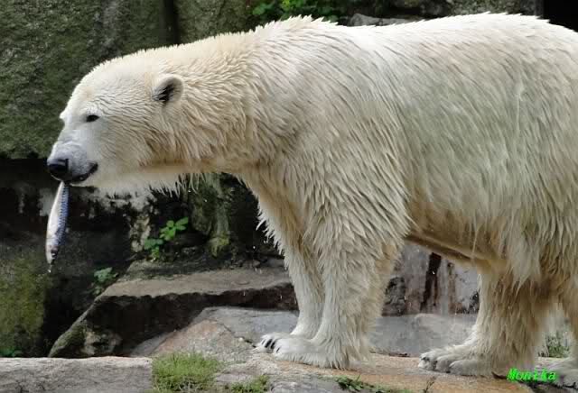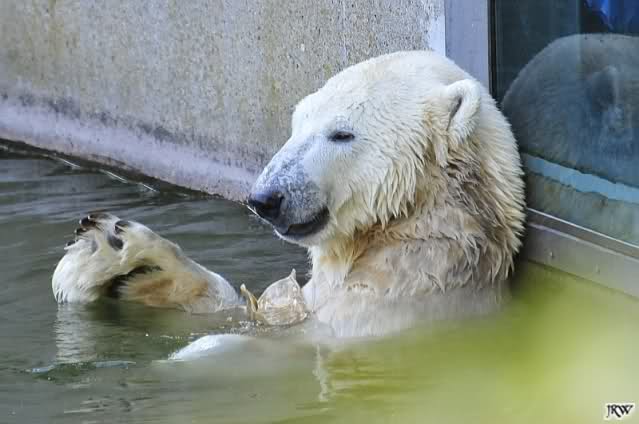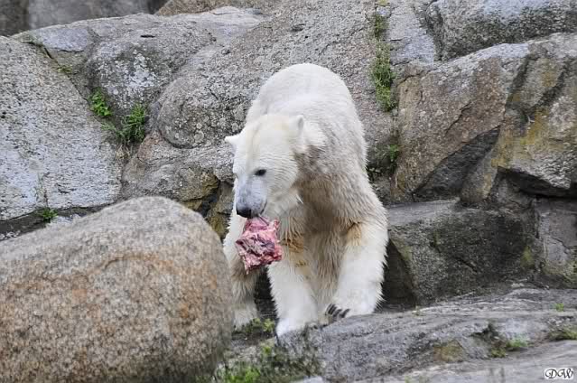 Zum Thema Fütterung möchte ich sagen, dass in München zum Beispiel, die Eisbären nicht öffentlich gefüttert werden. Das hat den Vorteil, dass sie nicht schon lange vor den Fütterungszeiten unruhig hin- und herlaufen oder vor der Höhle sitzen und warten.