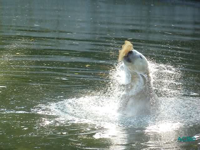 Nun mußte sich Knut doch noch nass machen und hatte dann viel Spaß!