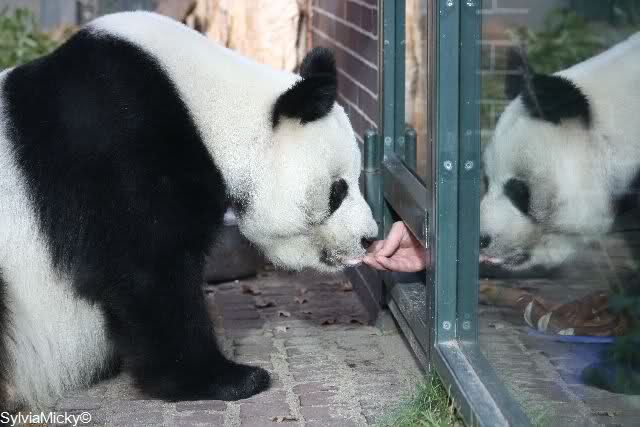 danke für die Bilder von Bao Bao.Ich habe ihn vorgestern Abend gesehen, und mir fiel auch nichts besonderes auf. Da war er gerade beim ABendessen. Er hat es sich schmecken lassen.
