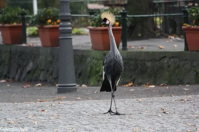 Die anderen Kraniche waren sehr aufgeregt und versuchten den Ausreißer mit lauten Rufen zurück zu rufen. Nur dem Marabu war's egal.