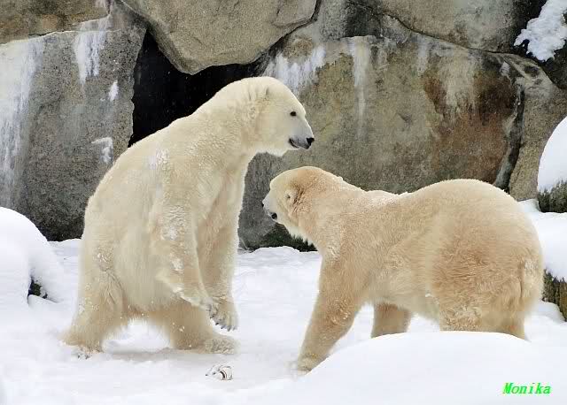 Heute war "Tosca und Knut-Tag". Wir haben sie oft schon kurz zusammen gesehen. Heute wollten sie garnicht aufhören. Wenn sie ein paar Schritte machte, ging er hinterher und umgekehrt.