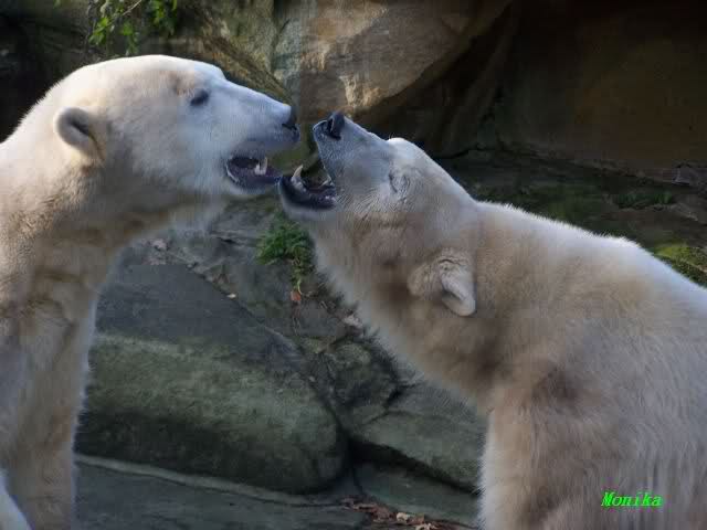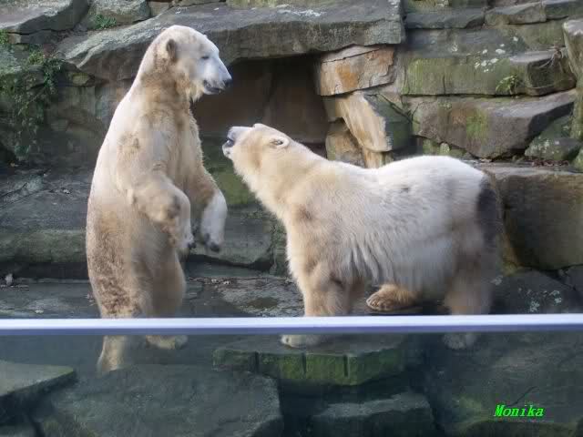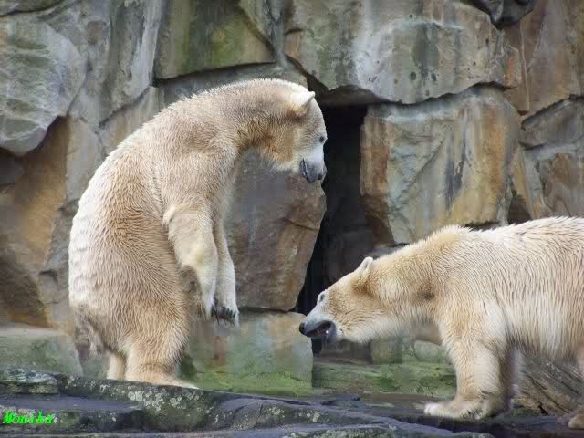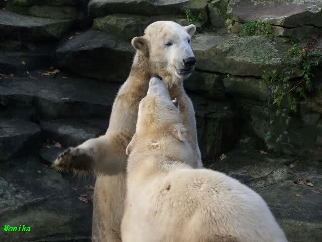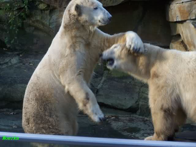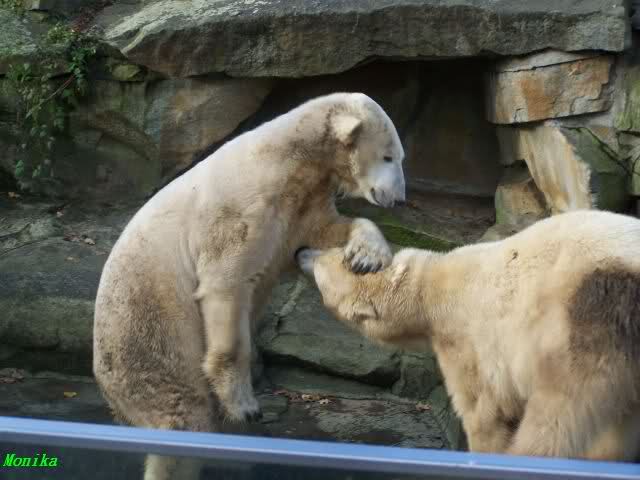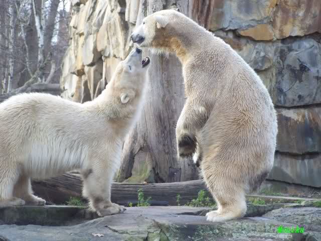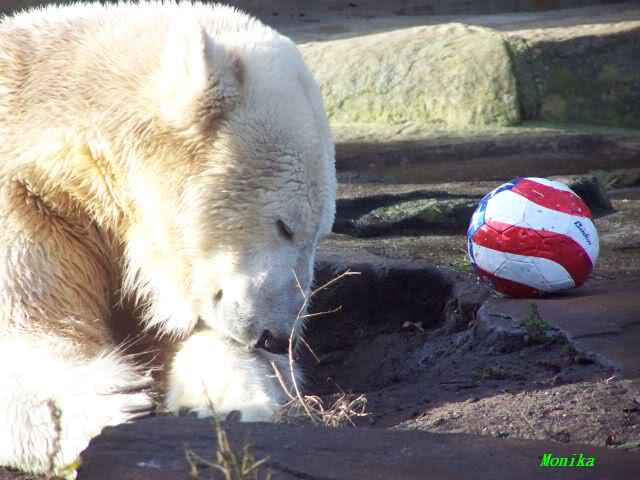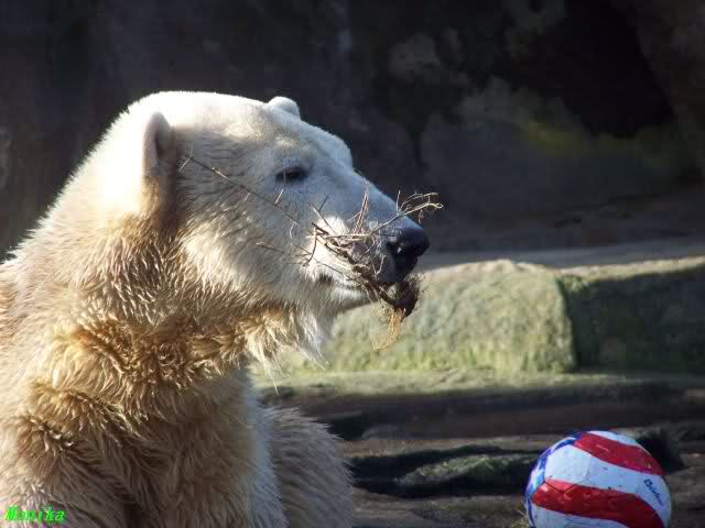 Doris, the fact that Knut finally decided to play with Gianna is because she promised him that he may keep his beard. Actually, she likes that beard, regardless of some other people's wishes. But they are polar bears and do have their own wishes. So, unfortunately, bad luck for you. But neverhteless, I hope that you are feeling better today and that the fever is gone. Remember that next weekend you MUST make "acte de présence" for his birthday.