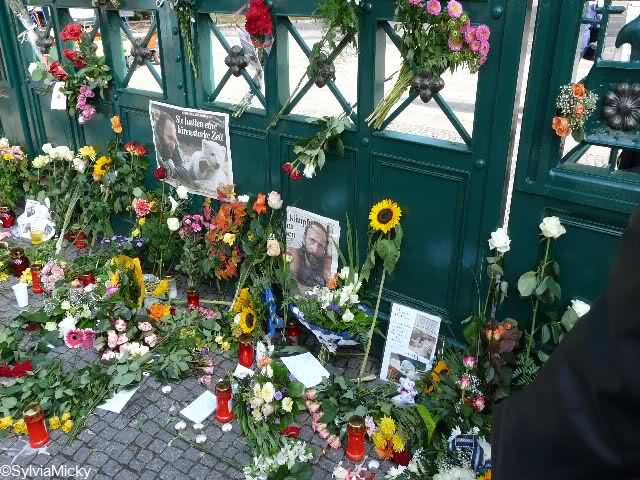 Ich wollte Thomas Dörflein zum Abschied noch etwas schenken. Wenigstens einen Blumengruß. Am Bahnhof Friedrichstraße sah ich wunderschöne Rosen. Intuitiv kaufte ich weiße. Ich weiß nicht warum, vielleicht dachte ich an meine Mutter. Sie hatte sich weiße Rosen auf ihrem Sarg gewünscht und ich hatte ihr den Wunsch erfüllt. Ich ließ mir einen einen Strauß machen, den ich ablegen wollte und zwei einzelne Rosen, für zwei Knutfreundinnen.