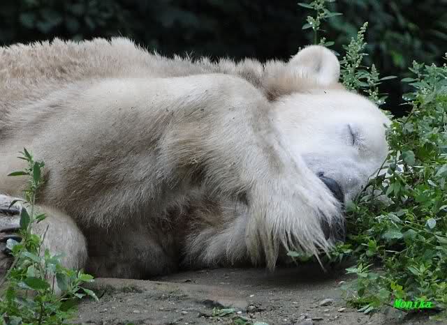 Nach einer gefühlten Endloszeit war ich heute im Zoo. Es hat heute viel in Berlin geregnet. Über Knut gibt es nicht so viel zu erzählen. Er schlief am Mittag und fing erst kurz vor der Fütterung an zu laufen.