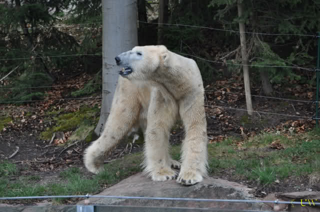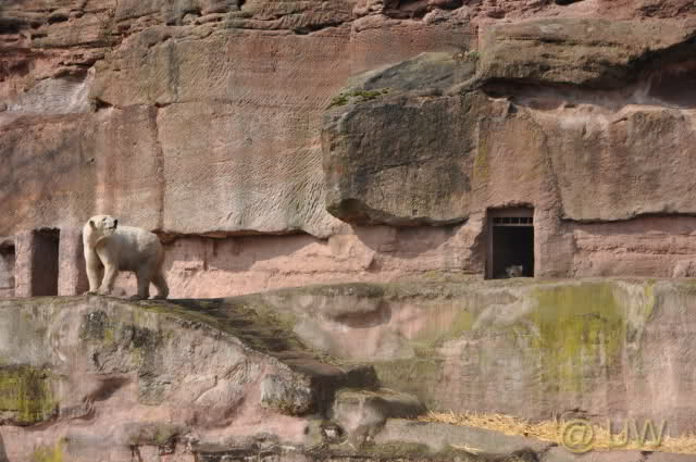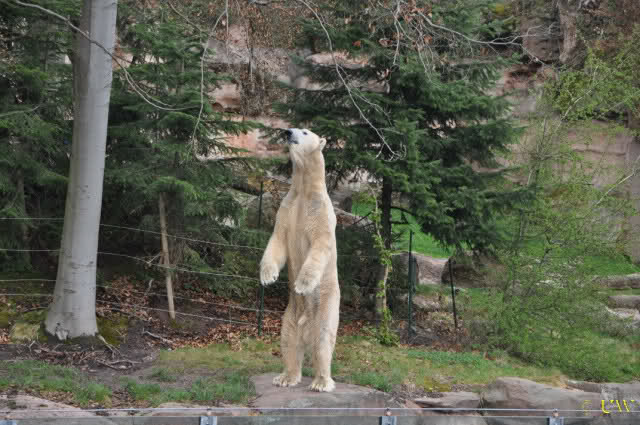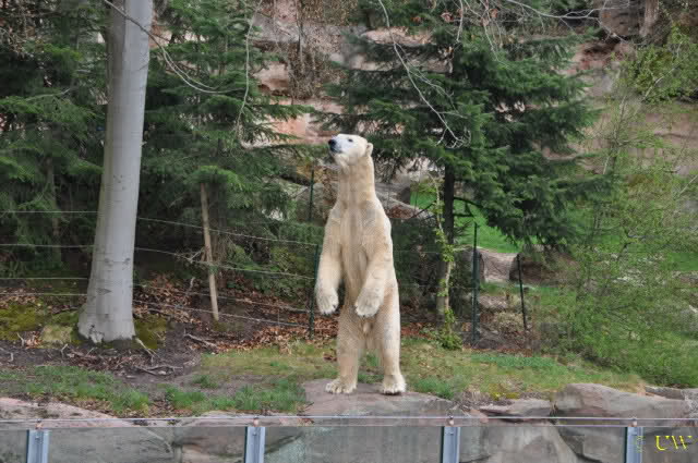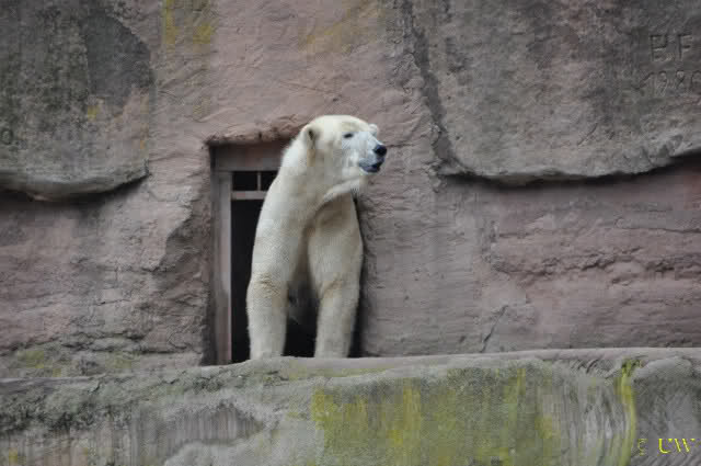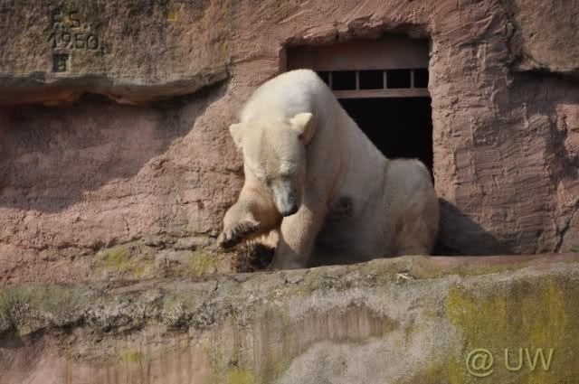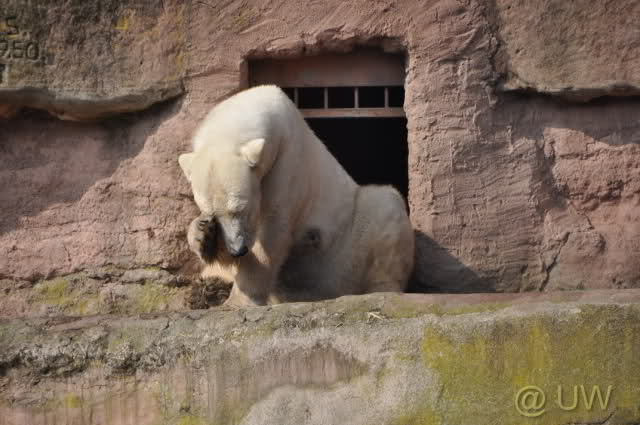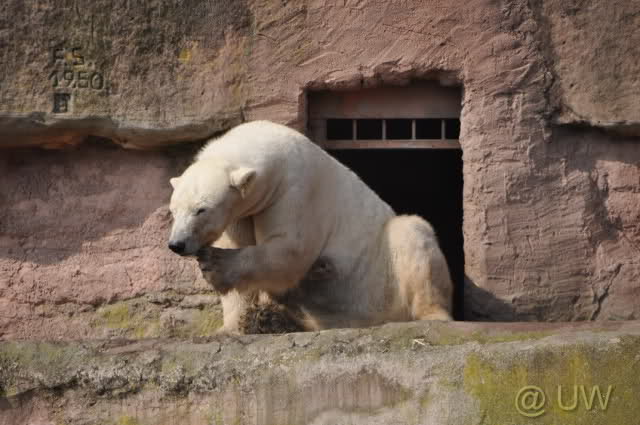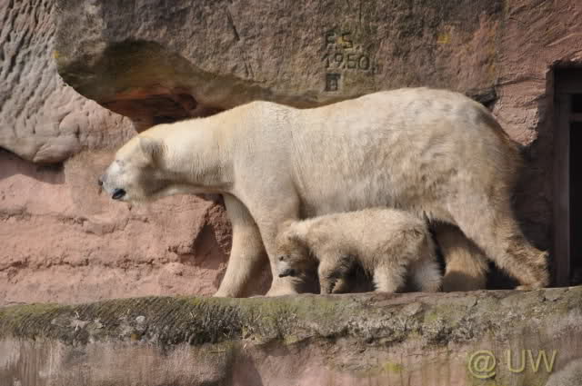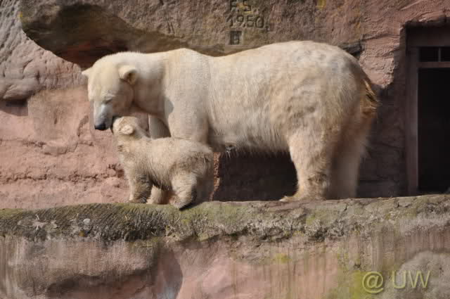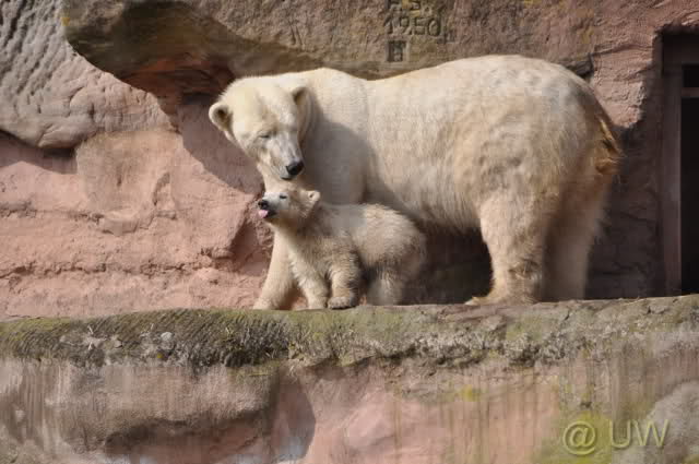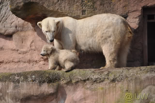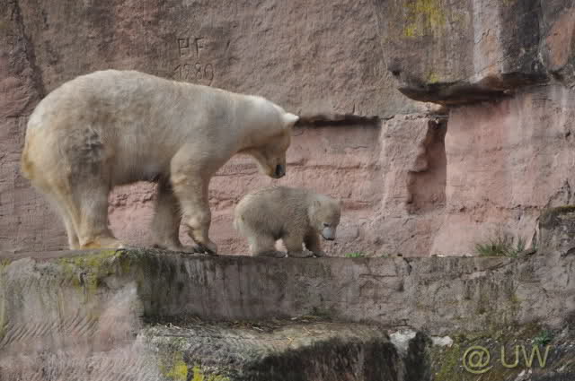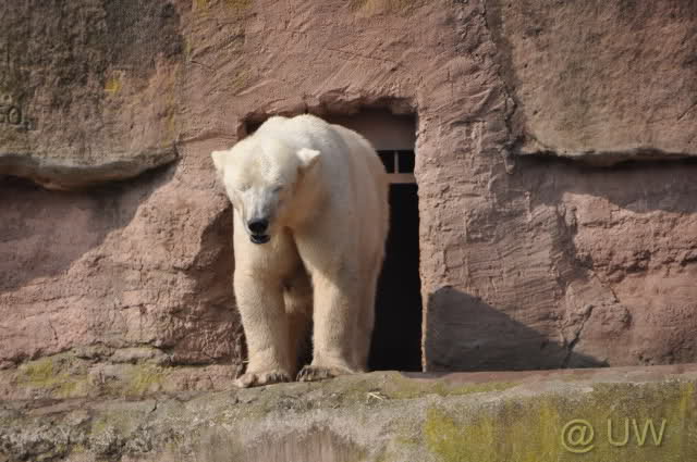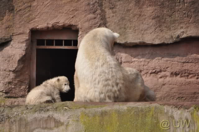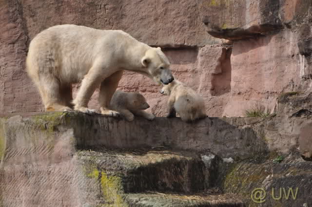 Um 14:30 Uhr gibt es jetzt wieder eine Eisbärfütterung. Obwohl Felix auf der Anlage war ist Vera mit ihren Kleinen heraus gekommen, allerdings auch hier erst nach einiger Zeit. Vorher war sie im Eingang zur Höhle gesessen und hat die Kleinen nicht heraus gelassen.