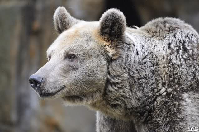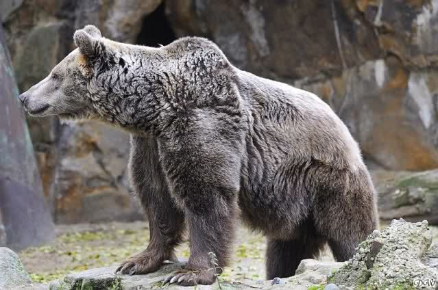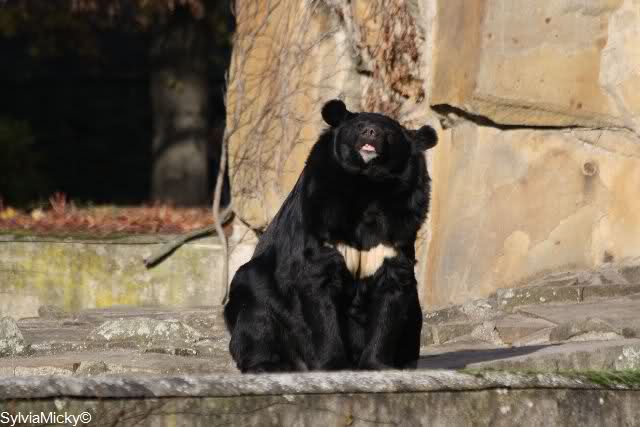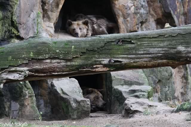 Auch Bernie und Petzi warteten vergebens auf ihr Futter. Die Begründung: die Bären wären jetzt nicht sehr hungrig und würden nicht mehr in die Höhle gehen wenn man sie Nachmittag füttere. Somit werden sie hinter den Kulissen gefüttert wenn Jana herauskommt. Bernie war herausgekommen und wartete, Petzi ebenfalls. Es dauerte nicht allzu lange und Bernie verschwand wieder nach drinnen. Siddy soll sich eingebuddelt haben.