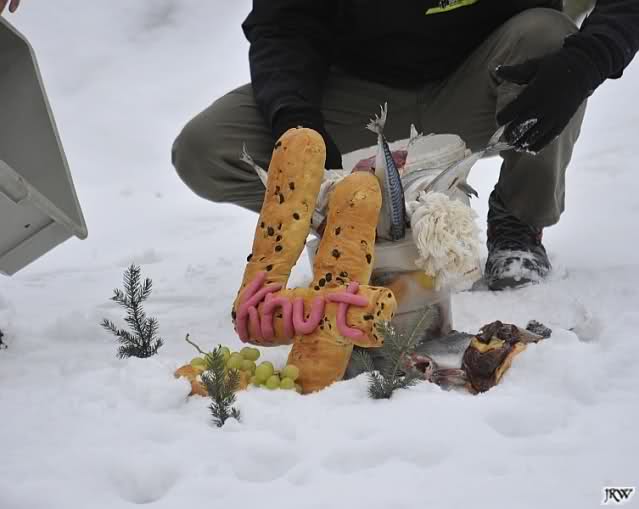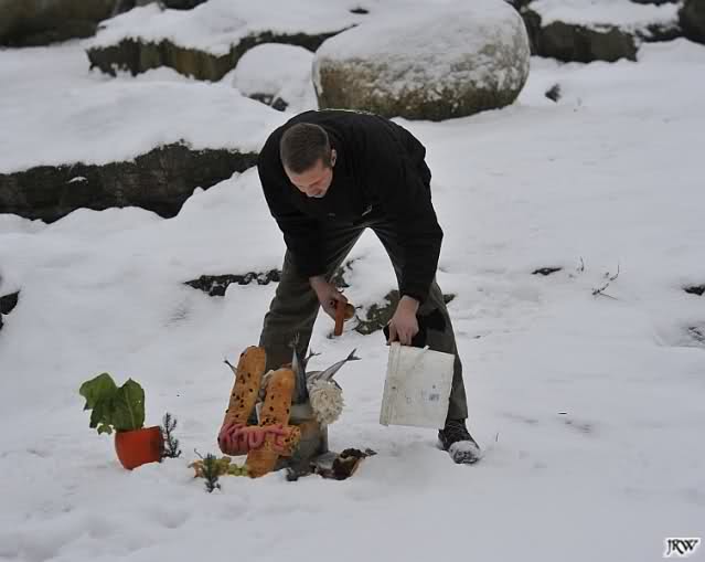 Nachdem er genug gefressen hatte, rollte er sich im Schnee, spielte mit einem Stock und seiner neuen Kordel. Er stellte sich immer wieder auf, als wolle er all seinen vielen Geburtstagsgäste DANKE sagen. Es waren sehr viele Gäste und auch Fernesehsender und Presse vor Ort.