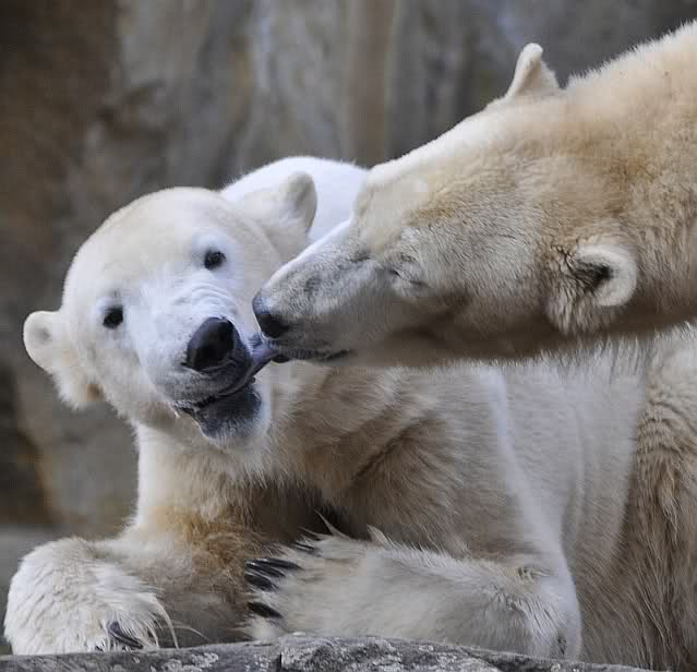Es hat so gut geschmeckt, dass Gianna nicht mal einen Rest bei Knut lassen kann. Sie "wäscht" ihm die Schnute aus. Haste es nun begriffen, Uli? Lachstorte!!!