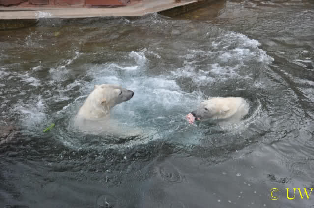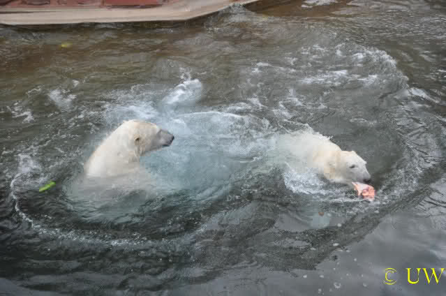 Im Anschluss an die Fütterung tobten die beiden im Wasser herum