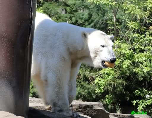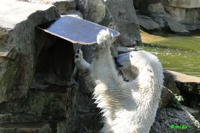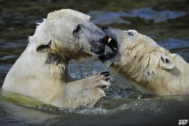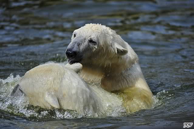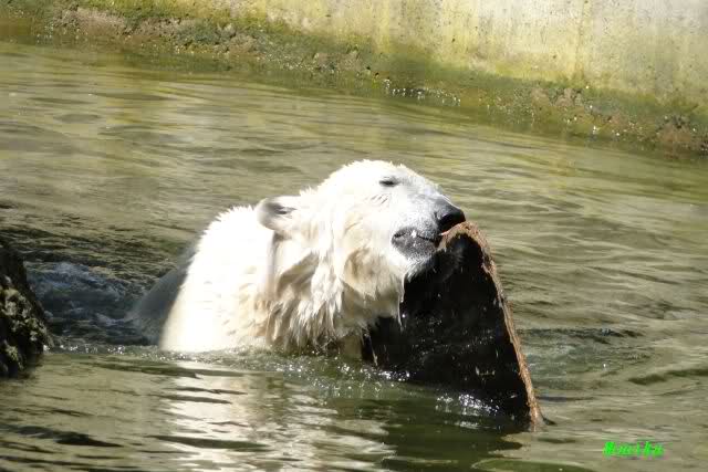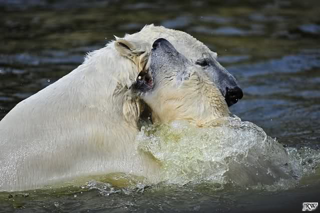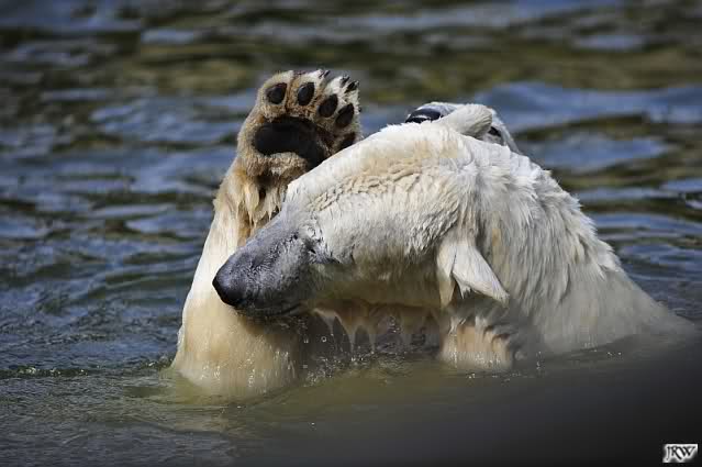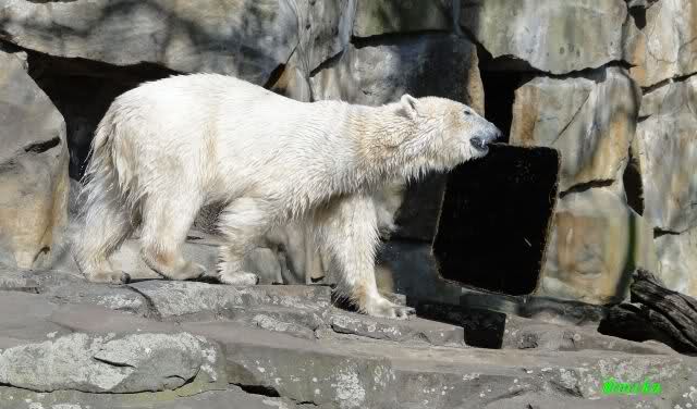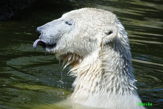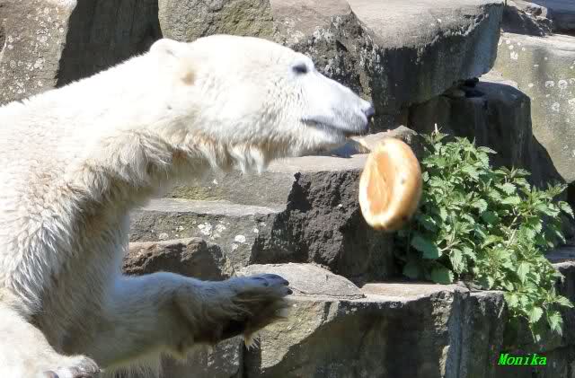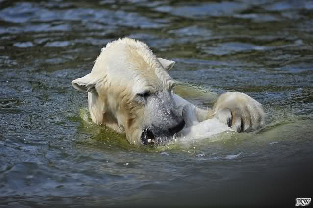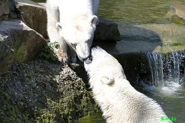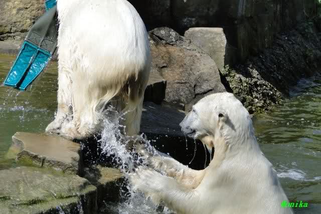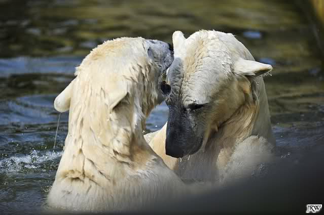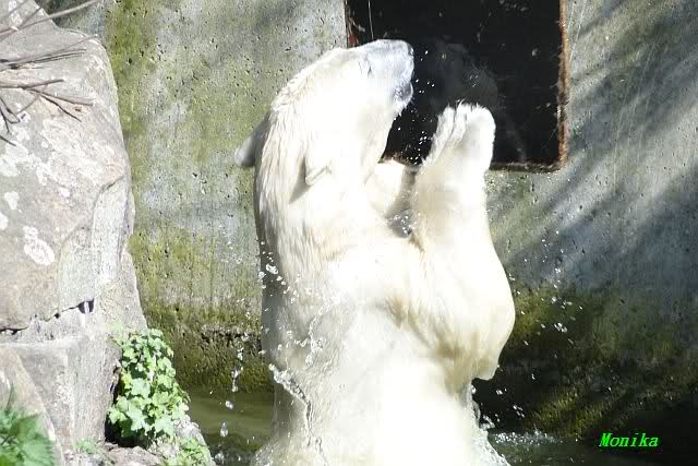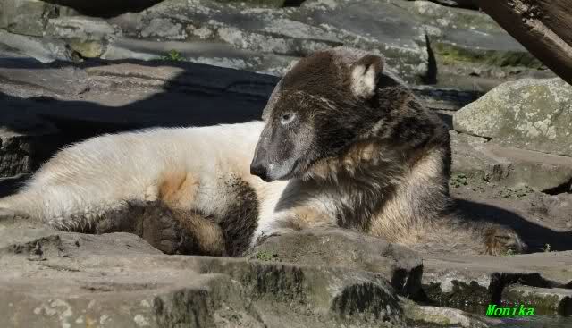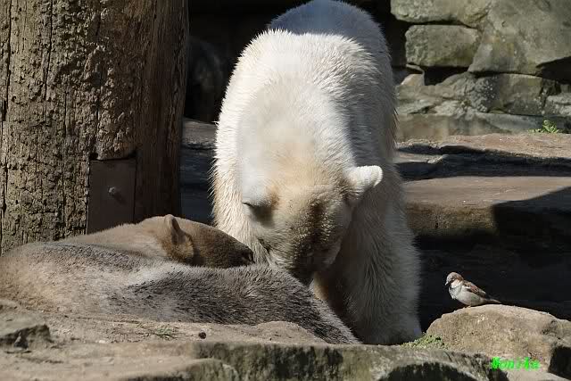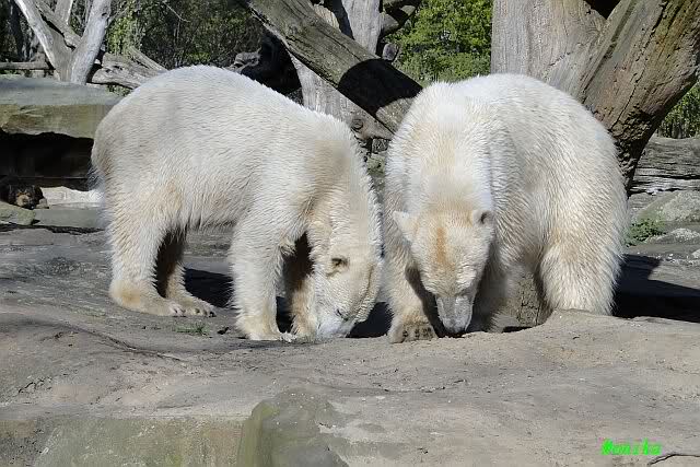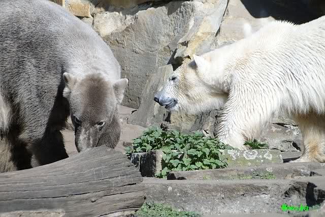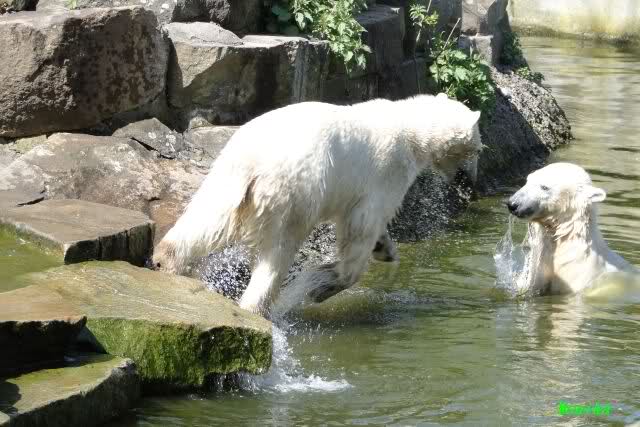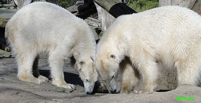 Es ist doch wirklich schön, die beiden Eisbär-Teenager zu sehen, und Knut wieder in seiner herrlichen Farbe!! Mir gefällt er da ganz besonders gut! SylviaMicky, Deine Fotos sind Klasse! Natürlich sind auch Monikas Bilder sehr schön und die von Jessie und Doris, das wißt Ihr alle selbst ganz genau, man kann sich eigentlich nicht genug satt sehen davon. Die Videos von Monika schaue ich mir die nächsten Tage einmal an, da freue ich mich dann schon darauf, das ist eine tolle Sache, wenn man *in der Ferne* die bewegten Bilder sehen kann.
