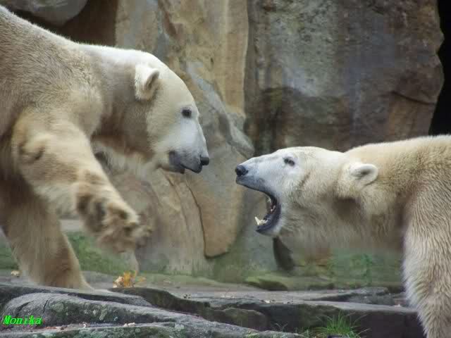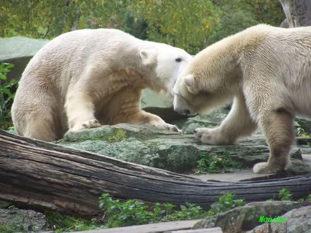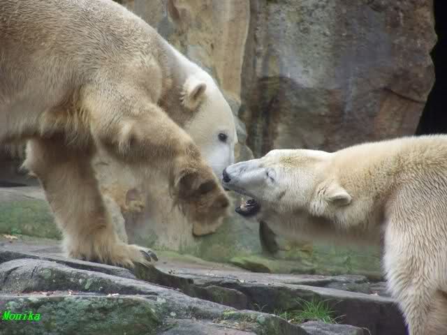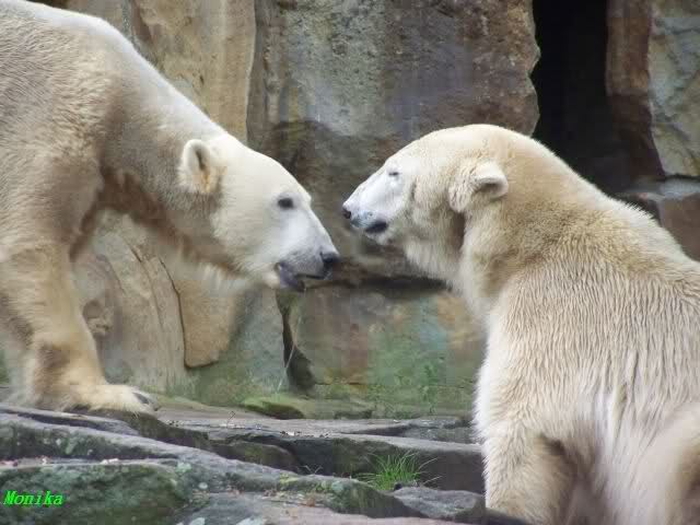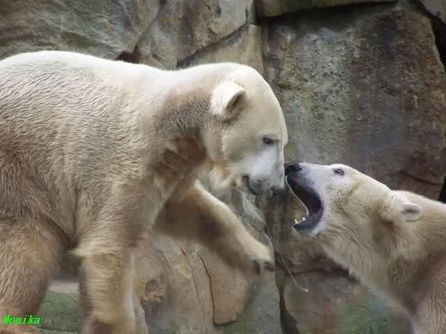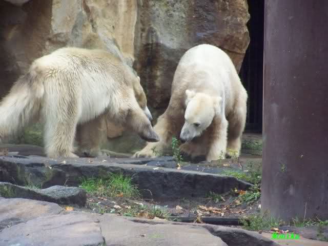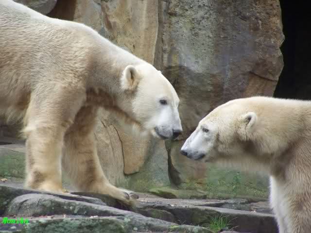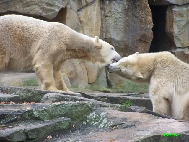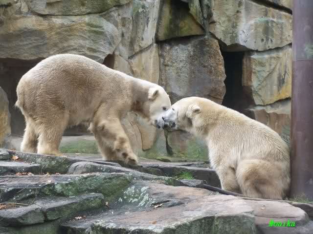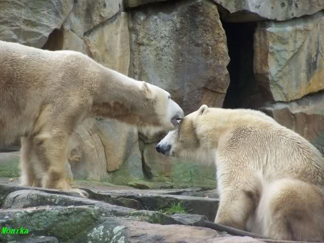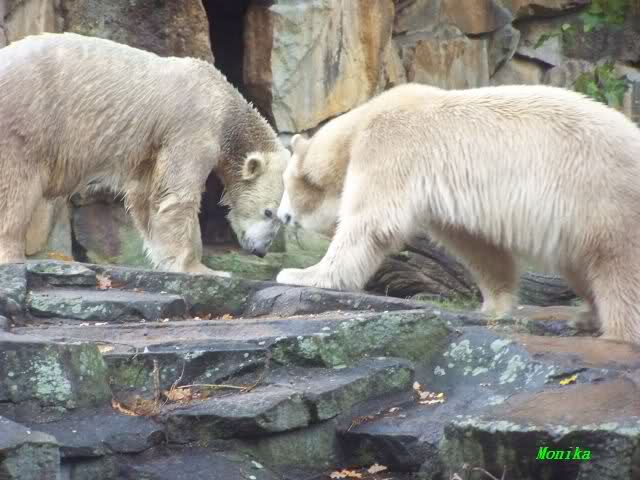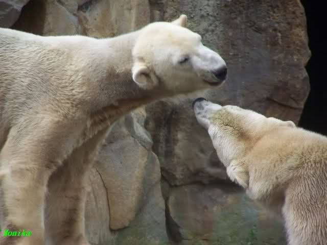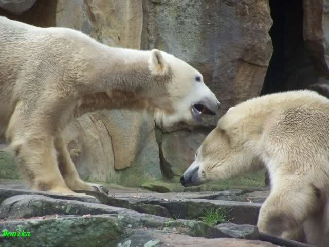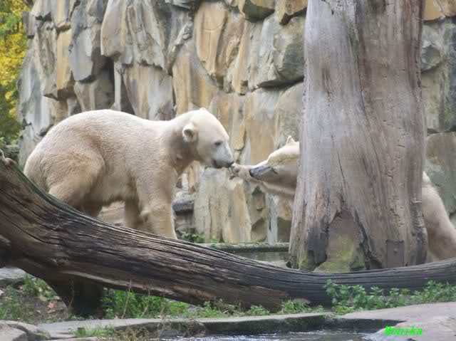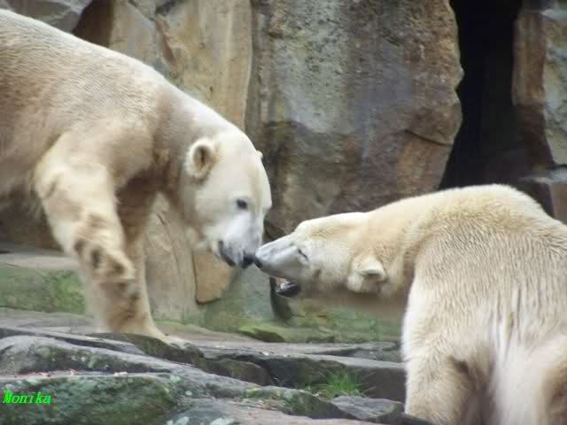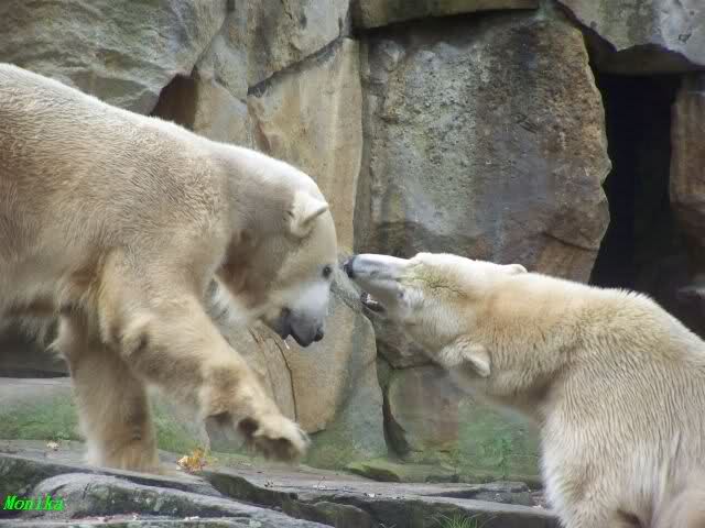 Monika war ganz außer sich vor Freude. Knut und Gianna spielen zusammen. Heute suchte Knut Gianna's Nähe und vor kurzer Zeit haben sie mindestens 5 Minuten hintereinander gespielt. Mit Tatzen und Schnauzen. Mehr konnte ich nicht erfahren, denn sie wollte nichts verpassen.