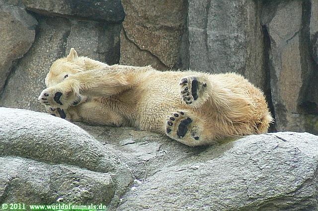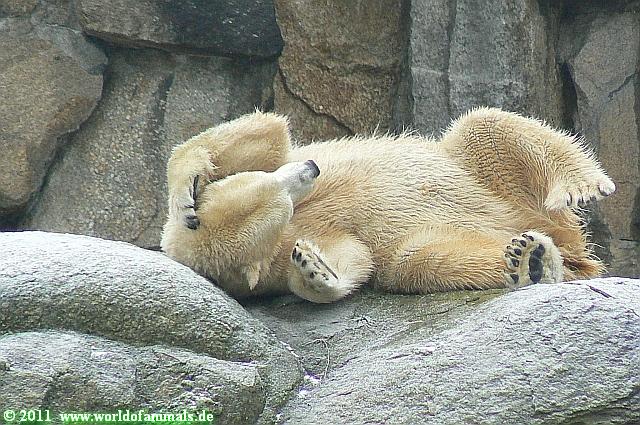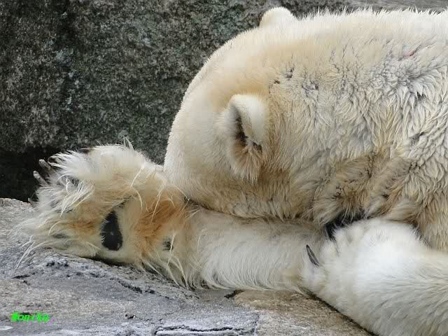 Guten Abend an alle Knut & Co Freunde in Nah und Fern. Ich habe es tatsächlich geschafft heute mal gegen 10:40 h im Zoo zu sein. Mit meinen Fotos, die ich mitgebracht habe, fange ich dort an, wo Monikas Serie aufhört: Mit der Siesta.