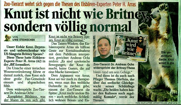 Was mich total verblüffte, war, dass das Kind offenbar nahen Körperkontakt mit unseren ach so "bissigen" Knut hatte und er sich an sie gekuschelt haben soll. Toll, wenn das stimmt - ich dachte , er dürfte - wenn überhaupt - nur noch Kontakt mit den Pflegern haben.
