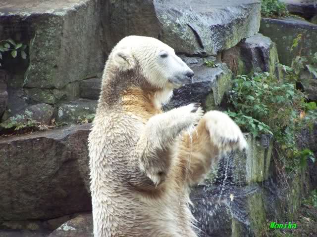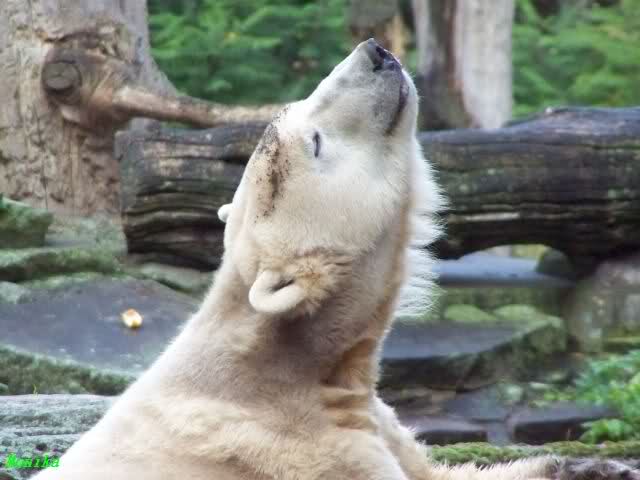 Eine Frage hätte ich am Rande an euch: ich sehe auf vielen Fotos von Knut und auch von Giovanna (obwohl Bären ja ein ausdrucksloses Gesicht haben sollen)verschiedenste Zeichen, die ich nicht deuten kann: Züngeln, gähnen, die "lange Schnute".... Ist das alles nur Zufall oder haben diese Gesichtsausdrücke irgendwelche Bedeutungen?