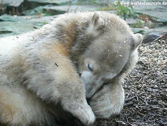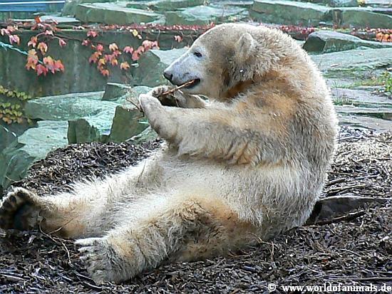 Unser Knutsi ist ja richtig suess darauf! Wenn man bedenkt, dass aus ihm am Ende ein Raubtier wird......, aber das soll er ja auch sein, ein richtiger Polar Bear!