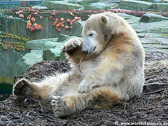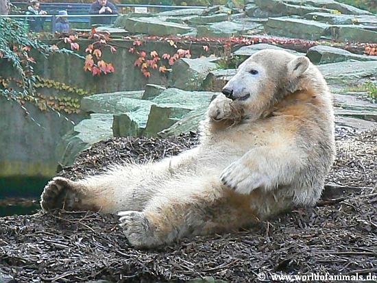 Okay, Knut ist ein Eisbär, 100 Kilo schwer. Aber wenn er auf seinem Mulch Bett liegt und mit einem Zweig, einer Wurzel wie ein kleines Kind spielt, dann sind Jung oder Alt, Frau oder Mann, die Kinder sowieso absolut in seinem Bann, verzückt und können sich nicht von ihm trennen. Die folgenden Fotos benötigen keine Worte....