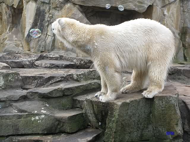 Knut staunt über die Seifenblase