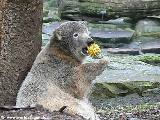 Knut, the blackbear. He looked very dirty at afternoon today and he was playing with a yellow ball.