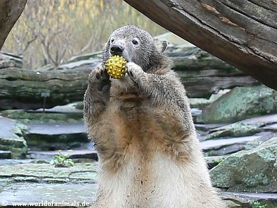 Es lohnt sich doch immer, spät abends noch einmal einen Blick in deinen Blog zu werfen! Denn da sind sie ja wieder - ganz bezaubernde Bilder von Knut - zur Abwechslung mal mit gelbem Quietscheball. Danke!