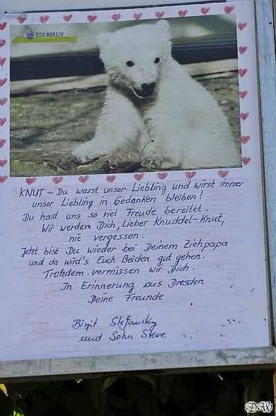 Es ist nach wie vor unvorstellbar für mich vor dem Eisbärengehege zu stehen und kein Knut ist da , im Herzen aber wird er uns immer begleiten...