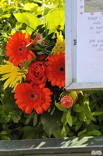 Heute Vormittag befanden sich das Foto, die Blumen und das kleine süße Plüschbärchen an der Anlage. Ob die Sachen wohl am Nachmittag noch dort waren?
