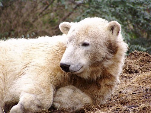 Auch Knut hatte seine ihm eigene Art zu trauern. Als Thomas Dörflein seinen ersten Wochendurlaub nahm, Knut war sehr traurig und hat sich - nachdem er am Morgen strahlend weiß auf die Anlage gebracht worden war - im Laufe der Spielstunde immer stärker mit Sand bedeckt. Vielleicht wollte er sich mit diesem "Make-Up" vor seinem eigenen Kummer schützen?