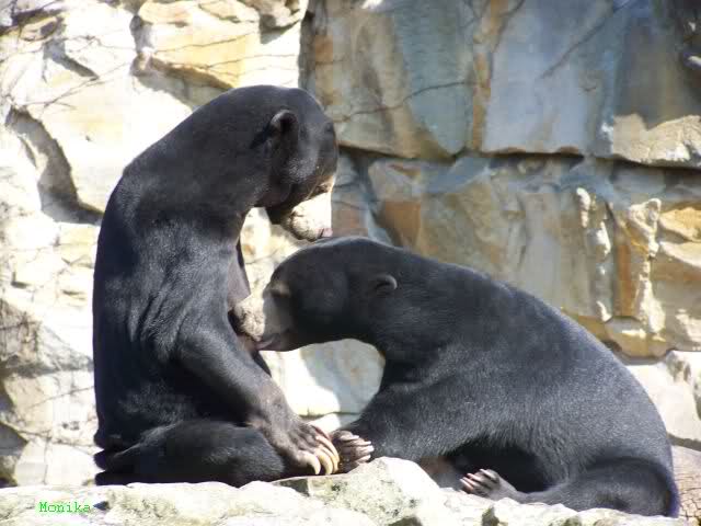 Nachdem ich im Urlaub gelesen hatte, dass in der letzten Woche im Zoo von San Diego zwei kleine Malayenbären der Öffentlichkeit vorgestellt wurden musste ich mich natürlich gleich auf die Suche nach Bildern von ihnen machen. In der Zeitung "USA Today" war leider nur ein einziges, kleines Foto, das aber sehr schön war. Dieses und auch einige andere der beiden (Malayenbärmädchen Pagi und Malayenbärjunge Palu) sowie ein Videoclip über die beiden sind hier zu finden (das oberste ist das Zeitungsbild):