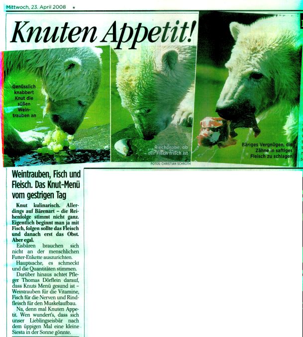 Und es geht gleich mit einem Knut Artikel aus der BZ in den neuen Tag hinein. Eines stimmt nicht: Thomas Dörflein kann ihm das nicht zusammengestellt haben, denn der ist ja , wie wir wissen, nicht da.