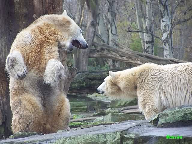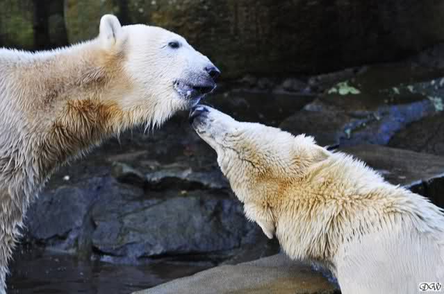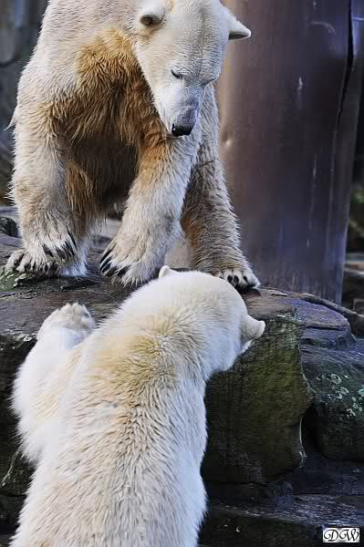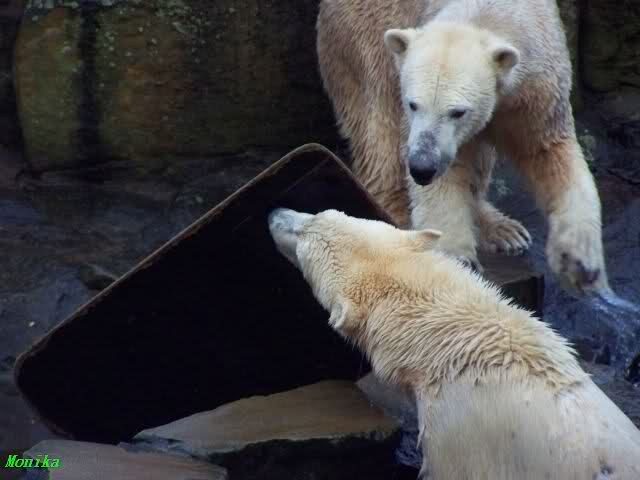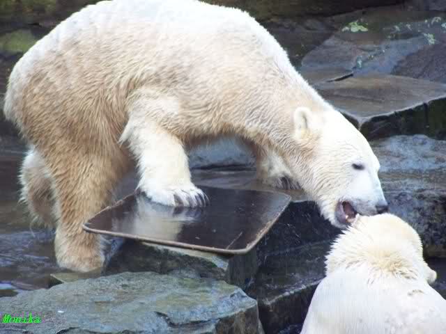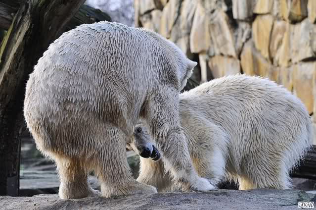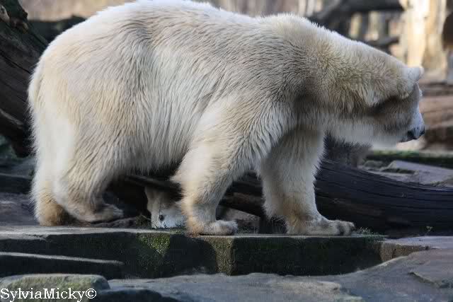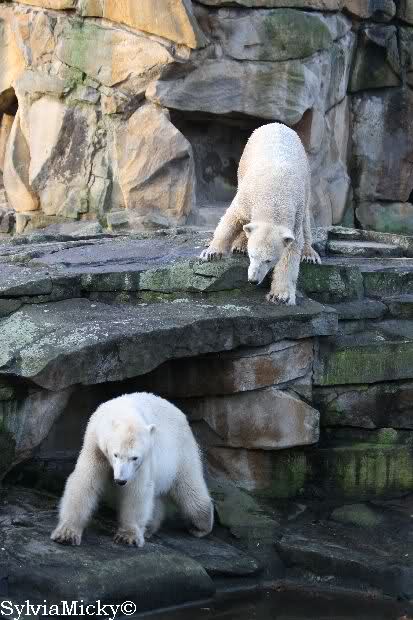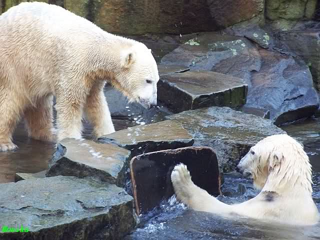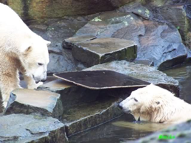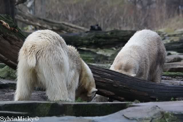 Doch zurück zur heutigen Serie. Einfach herrlich, den Beiden beim Buddeln zuzuschauen. Von Tag zu Tag wird Knut munterer und wehrhafter, so sieht es auf den Fotos aus. Einfach toll, wie gut sich die Zwei vertragen. Und deshalb sollte Gianna auch bei Knut bleiben. Wenn die Beiden getrennt würden,das wäre schade. Sie kommen so gut miteinander aus. Vielleicht kann Gianna ja den Turbo etwas runterfahren bis dahin und Knut zündet ihn etwas mehr. Es ist ein Wunder, wie toll er mit ihr umgeht. Hat Knut eigntlich einen neuen Sandhaufen bekommen? Der andere ist ja bretthart. Oder irre ich mich da? Zum Geburtstag hätte man ihn wenigstens auflockern können.