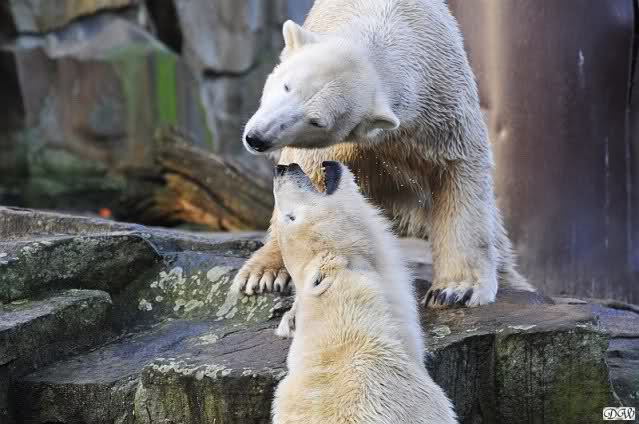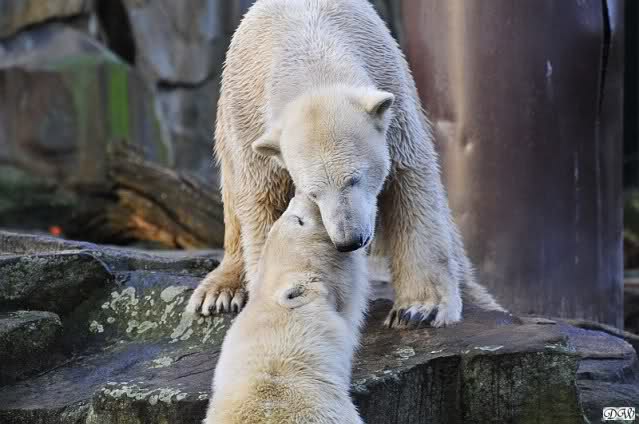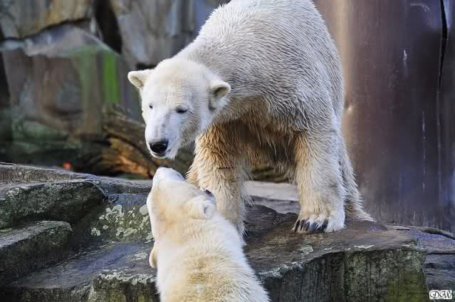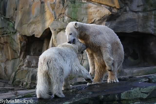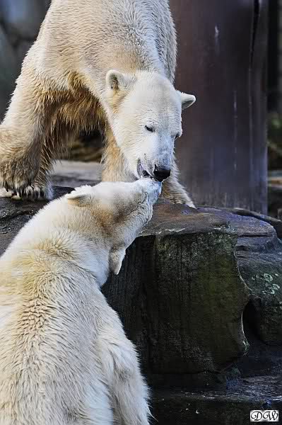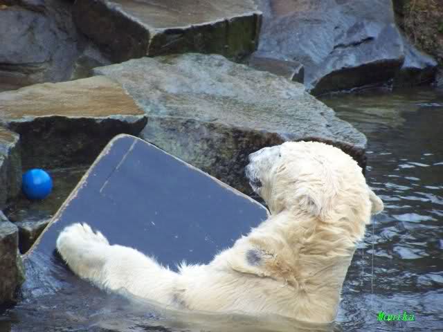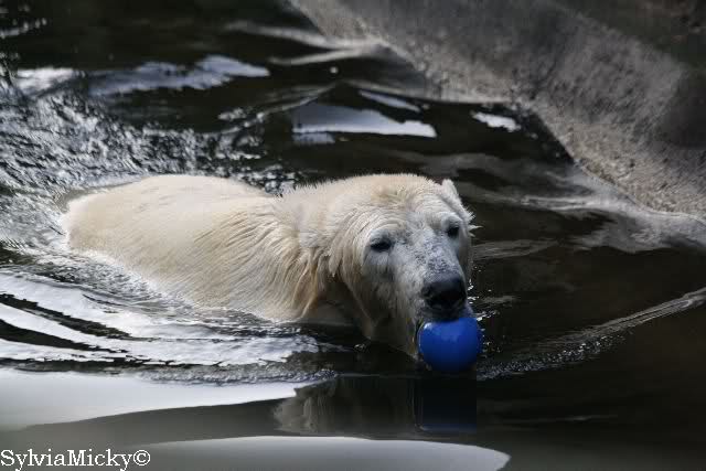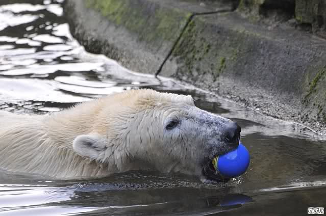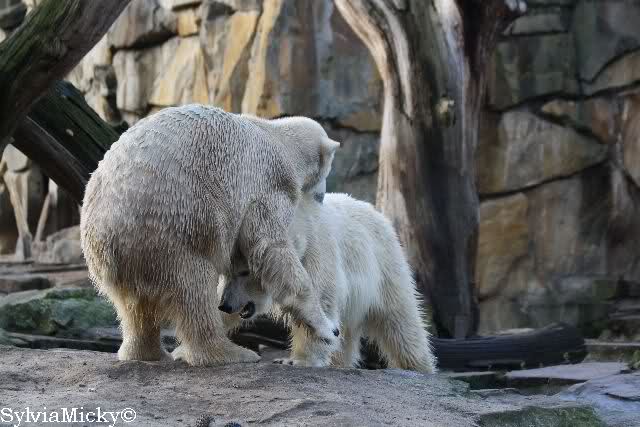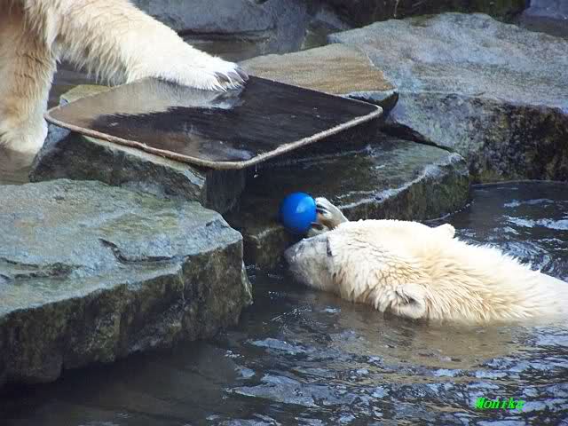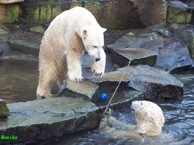 Es wird von Tag zu Tag besser mit Knut und Gianna. Sie spielt jetzt schon mit kleinen Bällen. Dabei muss man bedenken, dass sie immer mit Tonnen oder großen Kisten gespielt hat. Sie lernt von ihm und er von ihr. Besser geht es fast nicht. Für eine Handaufzucht hat unser Kleiner das bisher exzellent gemeistert. Es ist so schön anzusehen, wieviel Freude sie mittlerweile aneinander haben.