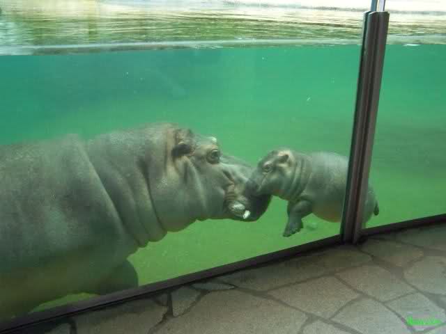 Da es heute Morgen im Zoo ziemlich ungemütlich und regnerisch war, zog es mich ins Fußpferdhaus. Kathi hatte mit ihrer Tochter viel Spaß im Wasser. Sie schmusten und spielten, dass es Spaß machte, Ihnen dabei zuzuschauen.